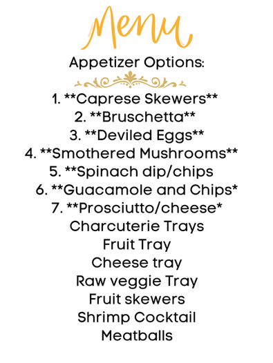 Includes dinnerware, drinkware, eating/serving utensils, and wine for toasts.